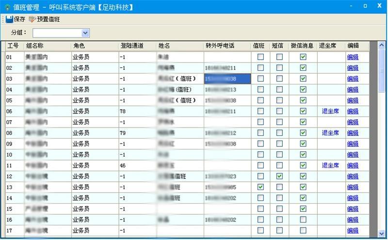 可以參看和設置值班情況,并可以退坐席、設置轉外乎號碼、接收消息形式等設置。并可以對值班進行預設值。